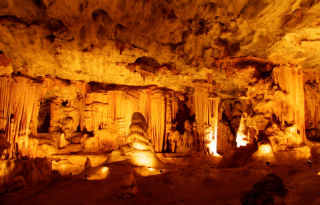 Crossing the 800 metres (2600 ft) high Outeniqua Pass surrounded by even higher soaring peaks, we will reach the Klein Karoo and the town of Oudtshoorn. We will head for the Cango Caves, in the Swartberg Mountains, a natural wonder, with its gigantic stalagmites and stalactites.