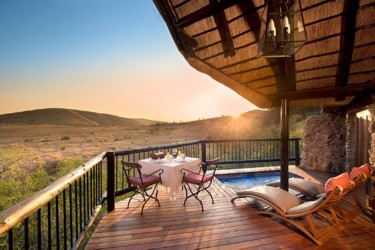 Tshukudu Bush Lodge is one of Africa’s most romantic game lodges, nestled within the remains of an extinct volcano where game traverse the plain below. Big Five sightings are the norm rather than the exception when travelling with the field guides, or on your own. Each custom designed chalet offers a romantic sunken bath, an open plan lounge and bedroom, a fireplace and private balcony. Tshukudu is known for its five star service, bushveld experience, the quality of its field guides and uniqueness of its African inspired cuisine.