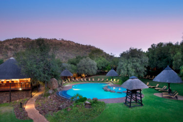 Bakubung Bush Lodge accommodation comprises thatched roofed chalets and studio rooms fashioned in a horse shoe around the entertainment area to four star standard. Bedrooms have en suite bathrooms.The "Big Five" and other fascinating game can be viewed from the back of a canopied vehicle or on foot accompanied by a game ranger.